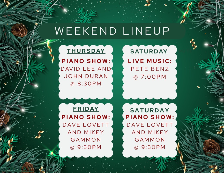 Every thursday night we have a piano show from 8:30pm-11:30pm.